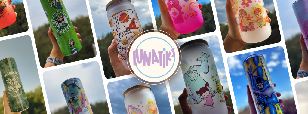 Comencé diseñando vasos para mi nueva casa, reflejando mi personalidad y mis gustos en cada uno de ellos. Empece a subir fotos a mis redes y varios amigx me preguntaban donde los había comprado. Así, en febrero de 2023, nació Lunatiks, un espacio donde puedo compartir mi pasión por el diseño y la personalización con todos ustedes.